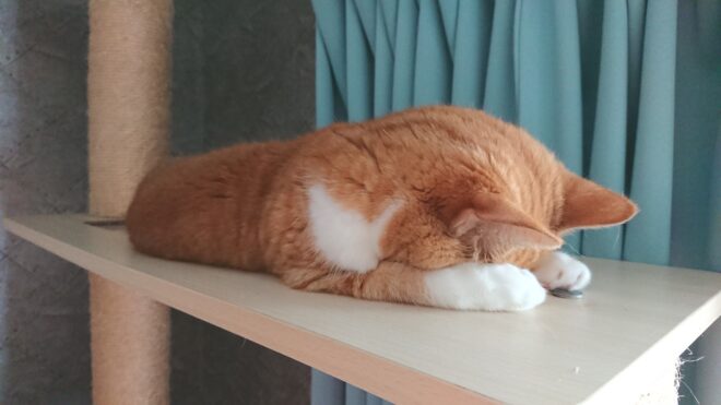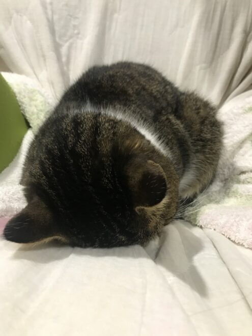 我が家のキジトラ、ハクくんもごめん寝してました(笑)