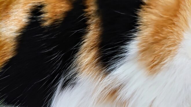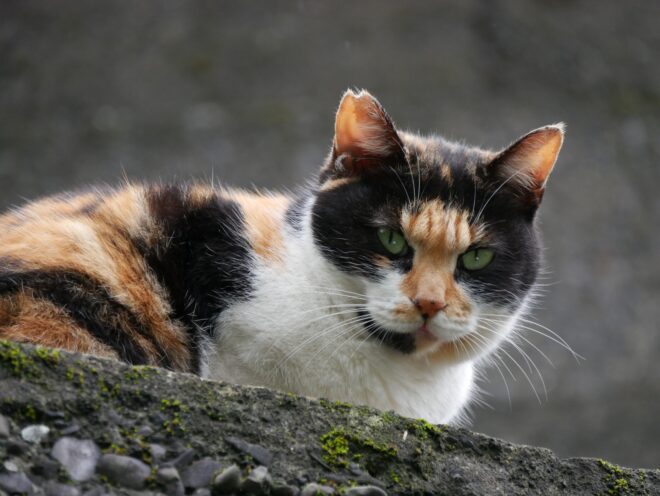 また、黒三毛猫の毛色は多彩で、それぞれに個性的なパターンがあります。このユニークな外見は、まるで芸術作品のように、人々の目を楽しませます。白、黒、オレンジの色がバランス良く組み合わさっている姿は、その猫独自の個性を形成しています。このような外見は飼い主を引きつける要因となり、家族として迎え入れたくなる魅力となります。
