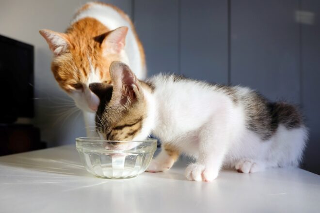 ミルクの適温は体温よりやや低めの「人肌程度」、おおむね37〜39℃が目安です。寒すぎるミルクは飲んでもらえず、熱すぎると口内を焼く危険があります。温度を確認する現実的な方法は次の通りです。指の内側で触れて心地よい暖かさを感じるか、手首の内側にミルクを数滴落として適温かどうかを判断します。専用の温度計を使う場合は、液体が約38℃前後を指すように設定します。ミルクは一度に大量に温めず、使うたびに温度を測ってから与えることが望ましいです。ミルクが冷め過ぎてしまった場合は再加温せず、適温のものを新しく作り直してください。温度が安定していれば、仔猫は温かい液体を飲む際に喉元の反射を起こしやすく、摂取量の調整もしやすくなります。