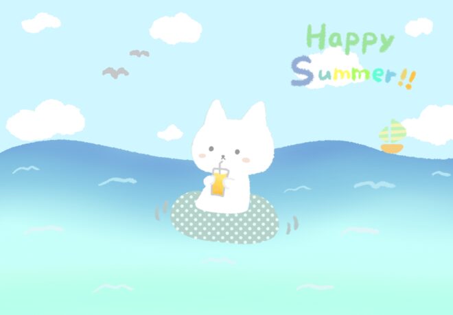 猫のイラスト|〜真夏の波乗りにゃんこ〜