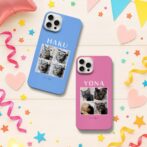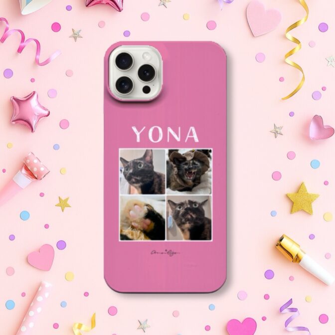 【全機種対応】うちの子スマホケース*推しカラー背景/写真4枚&名前入り